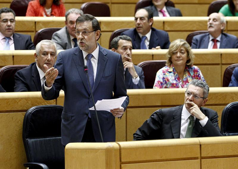 El presidente se mostró optimista. Volvió a recitar los indicadores económicos que auguran la salida de la crisis. De hecho, en una reciente entrevista en el diario norteamericano The Wall Street Journal, Rajoy ya formaliza que el país "ha salido de la recesión". En la Cámara Alta, en la primera sesión de control del curso político en esta Cámara, se mantuvo en sus trece: "Estamos corrigiendo los desequilibrios y ya se están dando resultados positivos". Por ejemplo, escrutó, la reducción de la prima de riesgo, que ha permitido un ahorro de 5.000 millones de ahorro, o la reducción del número de desempleados.