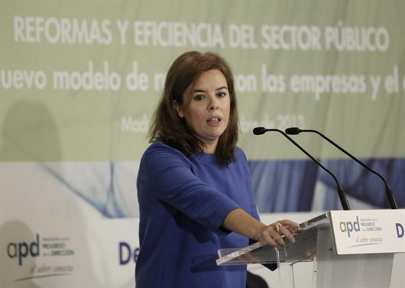 La vicepresidenta del Gobierno, Soraya Sáenz de Santamaría, ha asegurado este martes que la reforma de la Administración Pública se verá también en la gestión de los ciudadanos en los procesos que tienen que ver con la administración. Sáenz de Santamaría ha participado este martes en la inauguración de unas jornadas organizadas por la Asociación para el Progreso de la Dirección (APD) y Deloitte sobre las Reformas y eficiencias del sector público.