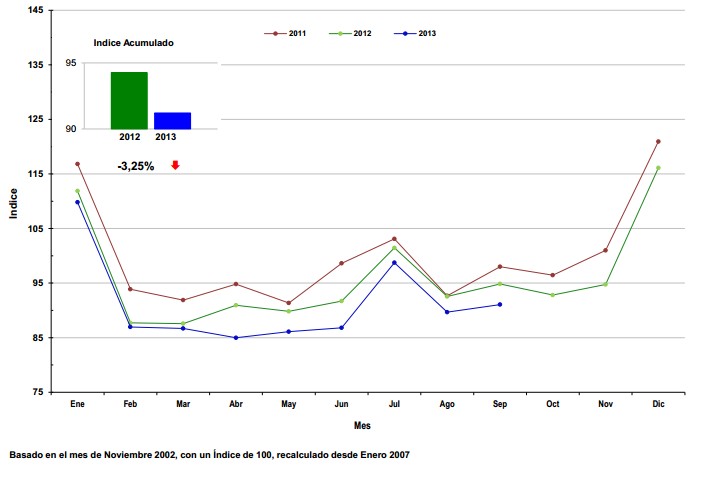 Este índice, que hace las veces de barómetro del comportamiento de los visitantes a los Centros Comerciales a lo largo del año, pone de manifiesto que continúa la caída del 'tráfico' de visitantes a estos grandes espacios comerciales. El mayor descenso del año se produjo en el mes de junio cuando se registró un retroceso del 5,3%. Además de la caída del consumo, este descenso de visitantes está ligado también a la estación del año ya que en verano se suelen realizar otro tipo de actividades cayendo las visitas a estas superficies.