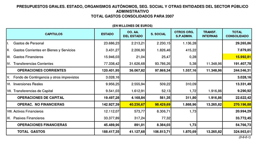 En total, hablamos de unos 26.000 millones de gasto. Lo expuesto anteriormente no presupone, ni mucho menos, que en el resto del PGE no haya posibilidades de ahorro. Para empezar, han quedado excluidos los Ministerios de Defensa, Interior, Justicia y Presidencia, porque no tienen partidas presupuestarias de estas características.