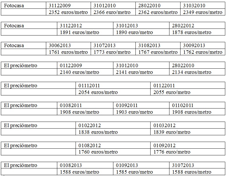 Para ello, usaremos los dos índices de precio de oferta más amplios que existen en España y cuya publicación va ya desde diaria a mensual -las distintas formas de confección de los dos índices se hallan en sus páginas-. Varios son los períodos en los que constatamos parones o ligeras subidas desde mediados de 2007: