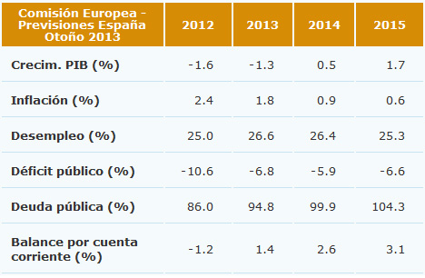 Hay que recordar que los objetivos de déficit pactados entre Moncloa y Bruselas son del 6,5% en 2013, 5,8% en 2014 y 4,2% en 2015. Es decir, para este año y el que viene, la CE cree que cumpliremos con nuestros compromisos. Pero para el año electoral (quizás influidos por esta causa), teme que haya un importante repunte de los números rojos, que lleve a España a superar el límite en casi dos puntos y medio.