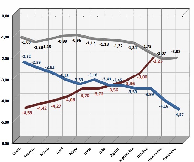 En términos interanuales, la afiliación en el total del Sistema refleja un descenso de 376.354 trabajadores (-2,25%) respecto al mismo periodo del año anterior. De este modo, la economía nacional sigue destruyendo empleo, pero lo hace al menor ritmo desde 2011.