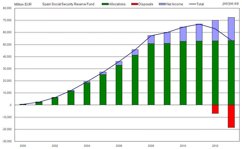 De este modo, el Ejecutivo ya ha utilizado un total de 18.651 millones de euros entre 2012 y 2013 de la denominada hucha de las pensiones para poder sufragar dichas prestaciones, con lo que su cuantía ha quedado reducida a 53.744 millones de euros. Es decir, la Seguridad Social ya se ha comido casi el 20% de su hucha en tan sólo dos años, una cantidad equivalente a toda la rentabilidad acumulada por el Fondo desde su creación, a principios de la pasada década.