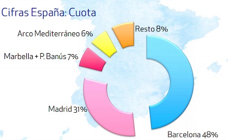 Madrid y Barcelona concentran el mayor número de las compras de turistas no comunitarios de España. Barcelona acoge el 48% del total de las ventas y Madrid el 31%, debido a la caída de turistas que sufrió la capital el pasado mes de agosto. Los expertos señalan que la pérdida de poder adquisitivo de los turistas de Japón y Brasil (potenciales de Madrid) es una de las causas que explican su deterioro.