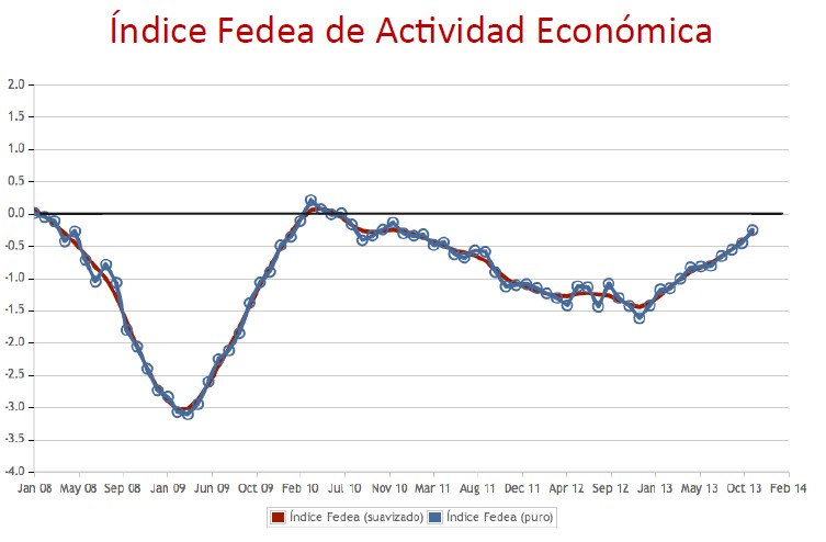 En el lado positivo, el Índice de Actividad Económica de Fedea, un indicador propio que trata de adelantar la evolución de la actividad, está cerca de volver al equilibrio, tras casi cinco años seguidos en negativo.