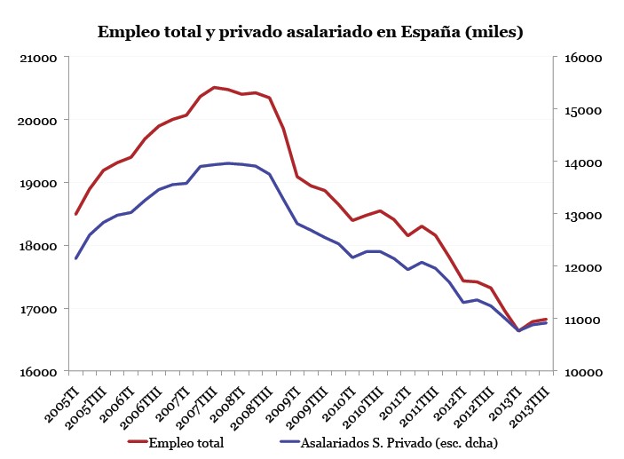 Al final, todo esto se traduce en la cara más amarga de la crisis, la de esos seis millones de parados que miran al futuro cada día con menos confianza. Para Jansen, "la debacle del empleo está tocando fondo", pero eso no quiere decir que se atisbe su recuperación. Desde el tercer trimestre de 2007 se han perdido 3,9 millones de puestos de trabajo (3,2 millones de asalariados del sector privado). La pregunta ahora es cuánto tardarán en recuperarse.
