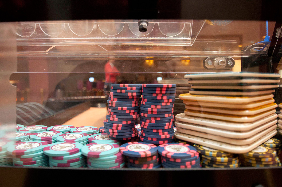 Las fichas para apostar permanecen guardadas bajo llave durante las horas de descanso y de cierre del casino.