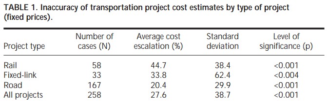 No hay muchos estudios sobre esta cuestión. Cada obra es de su padre y de su madre y puede haber muchas razones diferentes por las que acabe costando más de lo previsto. En 2002, el Journal of the American Planning Association publicaba un informe de tres profesores de la Universidad de Aalborg: Underestimating cost in public works projects. Se realizó un análisis de 258 proyectos de todo tipo y en varios continentes.