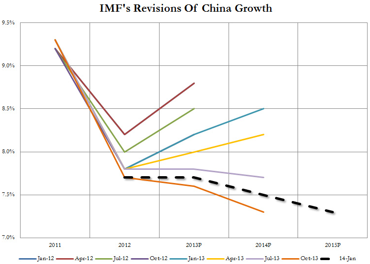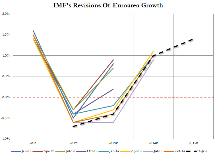 En cuanto a la zona euro, su PIB bajó un 0,4% en 2013, pero aumentará un 1% este año. En 2012, por el contrario, el FMI estimaba un crecimiento del 0,9% y del 1,4%, respectivamente.