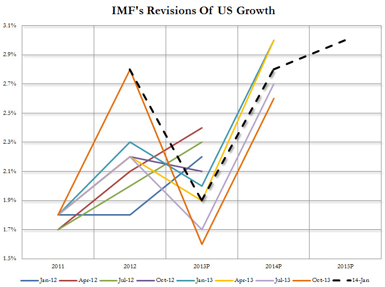 En el caso de EEUU, frente al crecimiento del 1,9% en 2013 y del 2,8% en 2014 que prevé ahora, lanzaba un avance del 2,4% y 2,9%, respectivamente, hace apenas dos años.