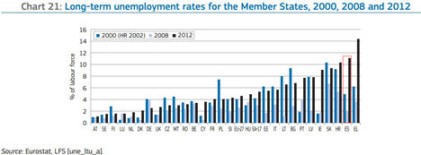 3. Desempleo de larga duración. Lo saben millones de parados en toda España. Lo peor no es sólo perder el empleo, sino la sensación de que no se recuperará en mucho tiempo. También en esta clasificación, sólo Grecia nos supera.