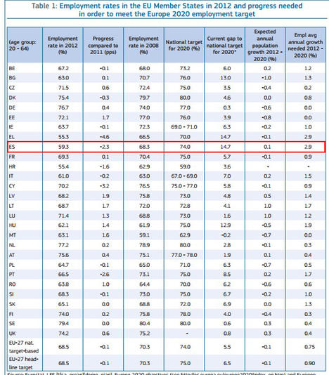 15. Objetivos 2020: la UE se ha fijado una serie de metas para el final de esta década. Pues tampoco en lo que hace referencia al futuro parece España muy bien preparada. Es el país que está más alejado de su objetivo y el que necesitará un crecimiento mayor del empleo para conseguirlo.