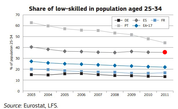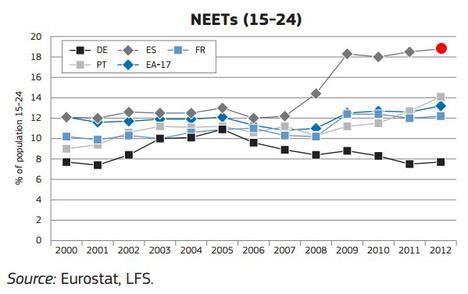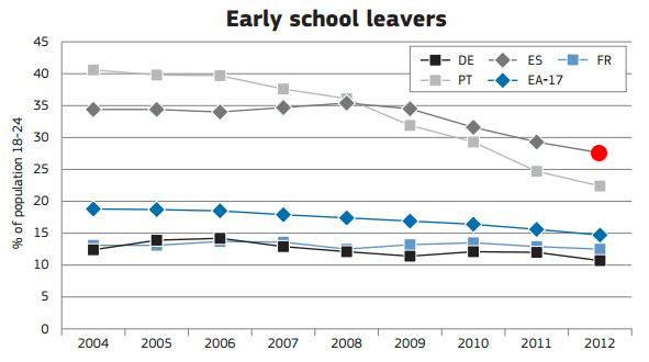 11. Fracaso escolar: muy relacionado con lo anterior, aunque no siempre se diga. Los jóvenes españoles también destacan en fracaso escolar, lo que dificulta su inserción en el mercado de trabajo y sus opciones de movilidad laboral.