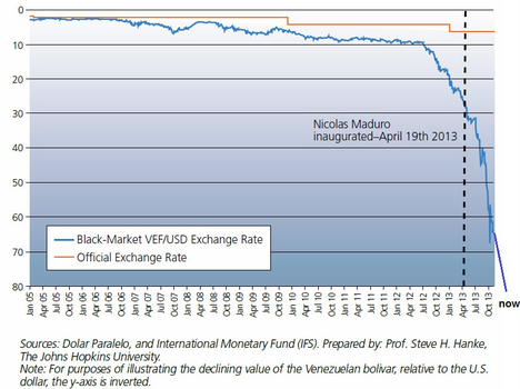 Venezuela, cuya tasa de inflación oficial supera el 50% interanual (la extraoficial ronda ya el 300%), también se está quedando sin dólares, a pesar de disponer de abundante petróleo, ya que sus reservas internacionales se han desplomado a mínimos de 10 años.