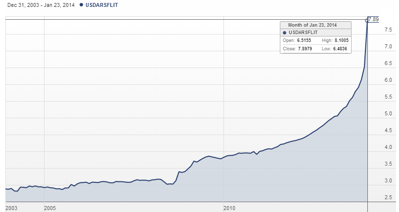 La razón de esta brusca depreciación monetaria estriba en la política económica seguida por el Gobierno de los Kirchner: nacionalización de industrias y empresas (la expropiación de la petrolera YPF es un claro ejemplo), fuerte e intenso intervencionismo estatal en todos los ámbitos de la economía, un aumento muy sustancial del gasto público y los impuestos y, sobre todo, un creciente proteccionismo comercial. Un particular cóctel, muy similar al venezolano, que ha tenido como resultado la caída de la producción nacional y una inflación cada vez más elevada, consecuencia de una suicida política monetaria para respaldar al Gobierno.