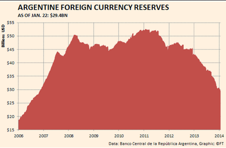 Pero como es imposible corregir un error con otro mayor, su estrategia ha fracasado estrepitosamente. Prueba de ello, es que sus reservas internacionales se han desplomado hasta mínimos de 2006, por debajo de los 30.000 millones de dólares. En los últimos tiempos, su Banco Central se ha gastado una media de 1.000 millones de dólares al mes en la compra de pesos para evitar el derrumbe de su moneda nacional, pero ante el riesgo evidente de agotar sus reservas ha optado por no intervenir durante un par de días en el mercado oficial, propiciando así la devaluación observada desde el miércoles.