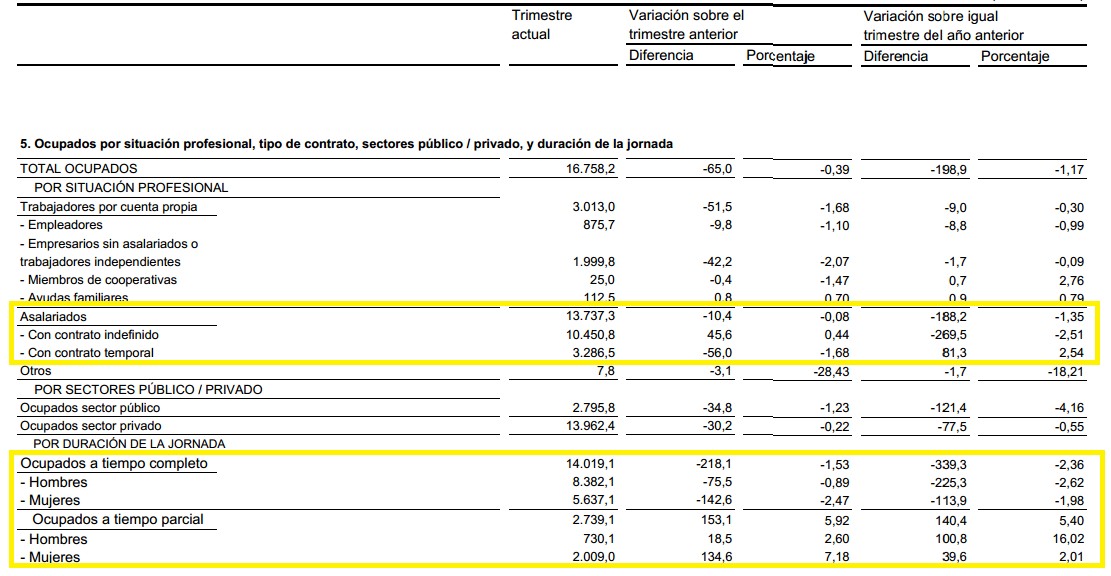 Tabla (click para ampliar) con datos de asalariados y contratación.