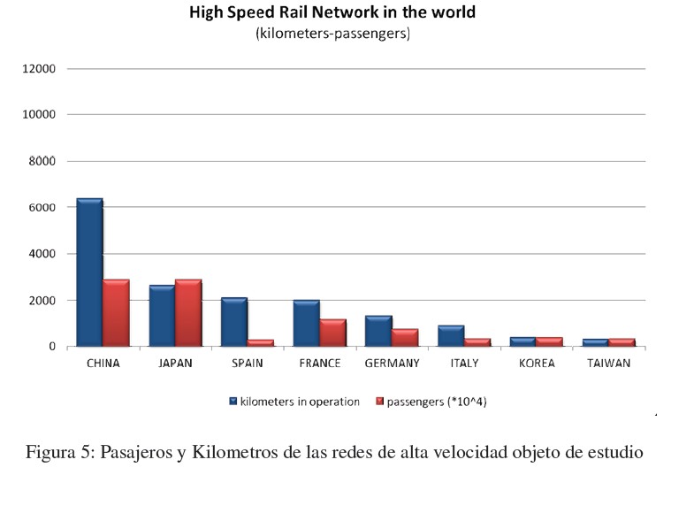 A su vez, en la propuesta metodológica para mejorar la eficiencia realizada por las Universidades de Cantabria y Castilla-La Mancha muestra, basándose en datos de International Union Railways, cómo el volumen de pasajeros con respecto a la extensión de la red de Alta Velocidad es desproporcionada en el caso de España.