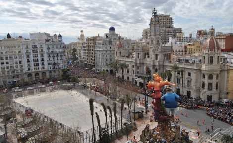 Flexim Fallas ofrece por precios entre los 35 y 60 euros disfrutar de las mejores vistas de la Plaza de la Constitución (Valencia), con un buen cóctel en la mano