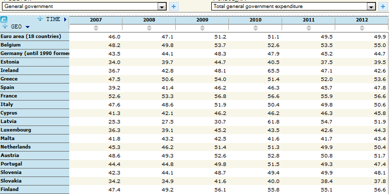 Pero, una vez más, Eurostat desmiente tal aseveración. Lejos de reducirse, el gasto público aumentó en 2,1 puntos del PIB en 2012, cinco veces más que la media de la zona euro (+0,4%) y el mayor incremento de todos los países miembros en ese ejercicio