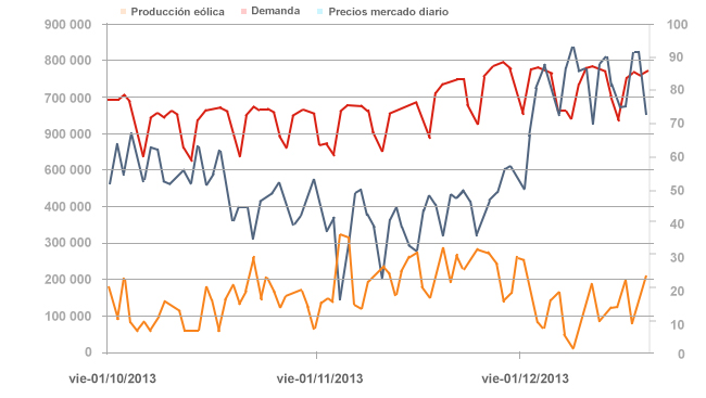 El alza de precios se explica por motivos ajenos al sector eléctrico. Para empezar, desde el 2 al 19 de diciembre, los precios de la energía en el mercado mayorista diario registraron niveles no vistos desde 2002 (80-90 euros/MWh), con incrementos de hasta el 60-70% respecto a una semana antes.