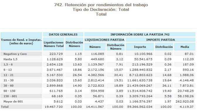 Del total de 19,5 millones de contribuyentes, unos 7,7 millones (el 40% del total) declararon unos rendimientos del trabajo inferiores a 12.000 euros al año. Por tanto, el citado anuncio apenas afectaría al 20% de las rentas inferiores a 12.000 euros. En este sentido, lo que no dijo el Gobierno es que la inmensa mayoría de esos trabajadores que ganan menos de 12.000 euros (80% restante) ya no paga IRPF.