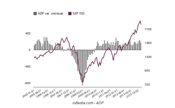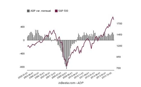 ¿Cómo es esto posible? ¿De verdad existe tal desconexión entre realidad y cotizaciones bursátiles? La respuesta es no. Todo el mundo sabe que el paro aumenta durante y después de una recesión y que no desciende hasta que los empresarios vuelven a sentir la suficiente confianza empresarial y económica para volver a contratar. No obstante, los observadores más agudos entienden que, si durante un mes se han destruido 500.000 empleos y al siguiente 450.000 y al que le sigue 400.000, se está produciendo una desaceleración en la destrucción del empleo. En términos humanos es un completo drama ya que muchas personas están perdiendo su trabajo, pero en términos de expectativas económicas y bursátiles es una fuerte señal de cambio cíclico, porque antes de que se genere empleo éste se ha de destruir a menor ritmo. Por ello, cuando esta desaceleración ocurre, las expectativas de un número importante de operadores muta de bajista a alcista. En la siguiente imagen podemos observar la creación y destrucción de empleo mensual en EEUU y la evolución del índice bursátil S&P 500.