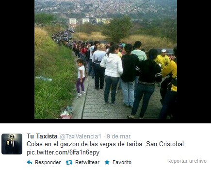 Es el caso, por ejemplo, de San Cristóbal, donde los venezolanos llavan varios días sufriendo largas esperas para acceder a los establecimientos. Muchos llegan al supermercado gubernamental de San Cristóbal a las dos de la mañana, seis horas antes de que abra sus puertas, para coger un buen sitio en la fila y comprar los productos que necesiten antes de que se agoten.