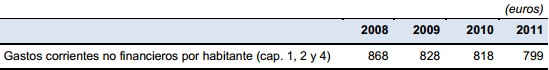 El gasto corriente no financiero, por el contrario, que excluye el coste de la deuda municipal, tan sólo ha caído un 7,9% durante este mismo período, al bajar de 868 a 799 euros al año.