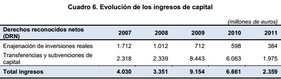 Por otro lado, los ingresos de capital bajaron un 41,5% como consecuencia de la menor enajenación de suelo e inversiones reales (financiación vinculada a convenios urbanísticos). Pese a ello, el anterior Gobierno del PSOE compensó temporalmente este desplome mediante el famoso Plan E. En concreto, el Estado inyectó a los ayuntamientos casi 11.000 millones de euros extra entre 2009 y 2010, que se contabilizaron como "transferencias y subvenciones de capital". Dinero que, en todo caso, procede del bolsillo del contribuyente.