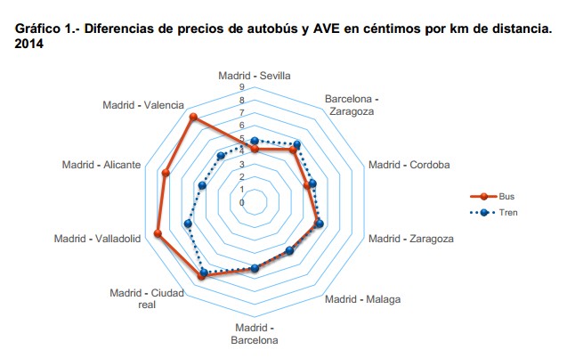 Dejando a un lado la inclinación de los viajeros por el AVE en detrimento del autobús, en el informe se alerta de que esta situación puede estar constituyendo un episodio de competencia desleal del AVE bajo la fórmula del dumping. Una de las conclusiones del texto apunta que las medidas de política de transportes "no pueden encaminarse a favorecer indiscriminadamente a un modo de transporte concreto y poner en riesgo la viabilidad de otros modos, cuando, además, la gestión de este competidor depende directamente de la administración pública".