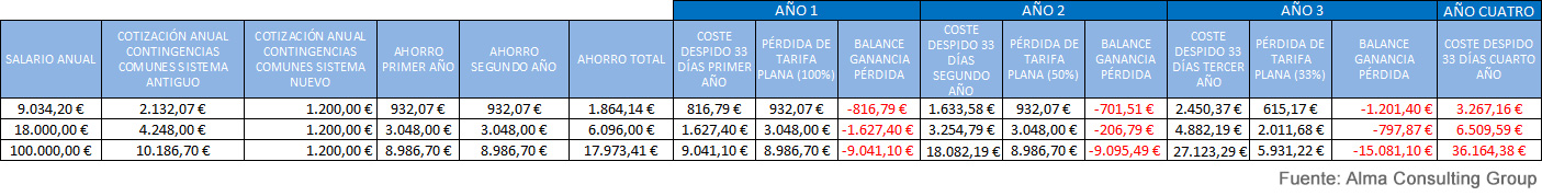 En este sentido, Susana Torres explica que serán los empresarios que contraten a trabajadores con cualificación alta y salarios elevados los que obtendrán un mayor descuento en las cotizaciones con la tarifa plana. Pero la experta también recomienda al empleador que valore muy bien si una vez pasados los dos años de reducciones en las cuotas "podrá hacerse cargo de la plantilla contratada a un coste muy superior", sabiendo que hay mantener el empleo un año más.