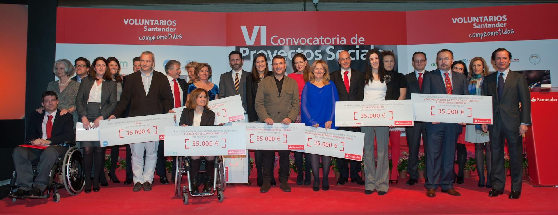 El Banco Santander ha celebrado la VI Convocatoria de Proyectos Sociales que, como cada año, entrega cheques destinados a apoyar proyectos impulsados por ONG con el objetivo de mejorar la sociedad en la que vivimos. Este viernes, en la Casa de América, ocho organizaciones sociales han sido las ganadoras de la convocatoria, con una aportación a cada una de 35.000 euros.