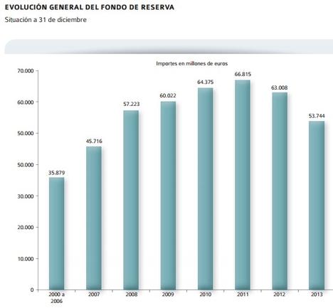 rnrnEn concreto, el Fondo se situaba en 53.744,04 millones de euros a 31 de diciembre de 2013, lo que supone un descenso del 14,7% respecto a cierre de 2012 (9.264 millones menos), según el informe anual que la ministra de Empleo y Seguridad Social, Fátima Báñez, ha entregado este jueves al presidente del Congreso de los Diputados, Jesús Posada.