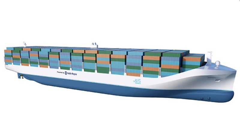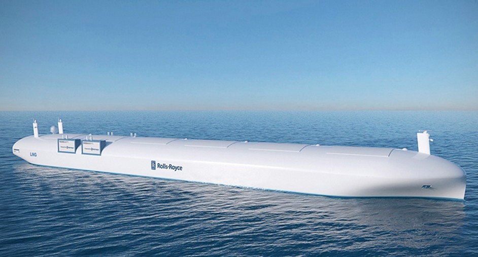 Otra de las propuestas de Rolls Royce, un buque tripulado guiando a una flota de naves autónomas.