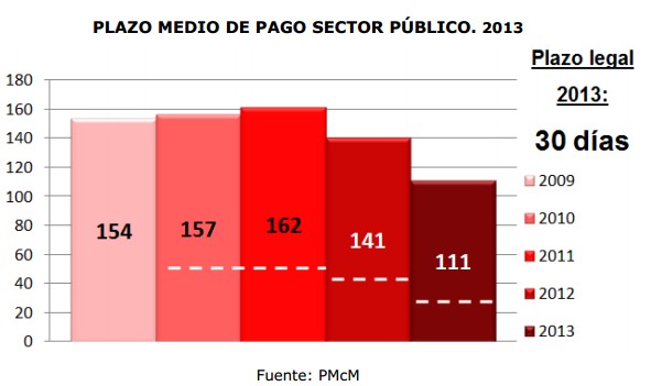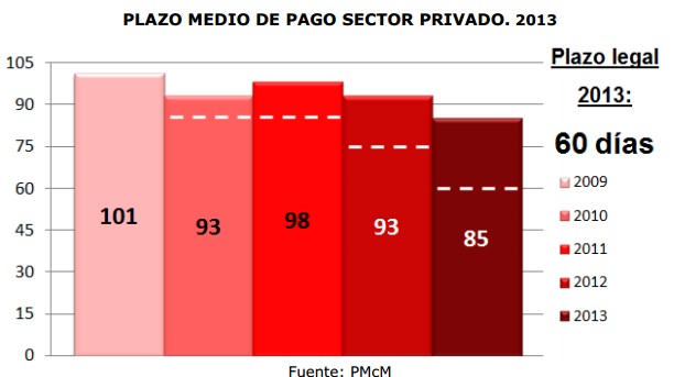 En el caso del sector público, el plazo medio de pago se cerró en 111 días, un dato inferior a los 141 días de 2012, pero cuatro veces más de lo que establece la ley. En el sector privado, el periodo medio de pago se fijó en 85 días, 8 menos que en 2012.