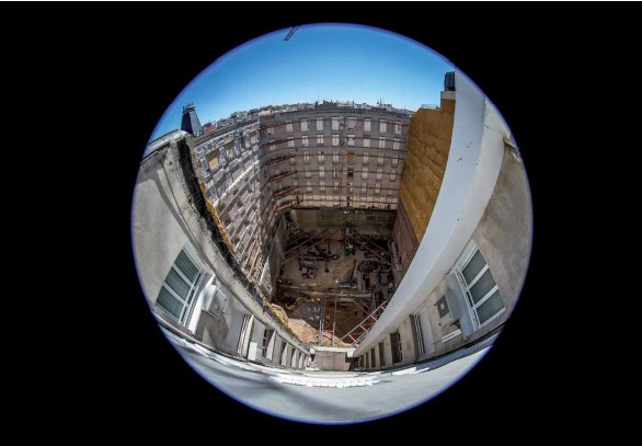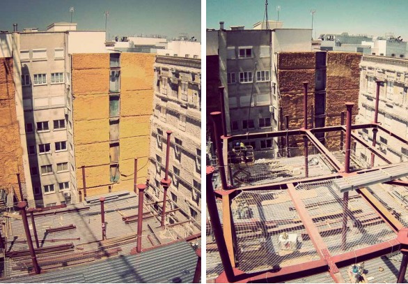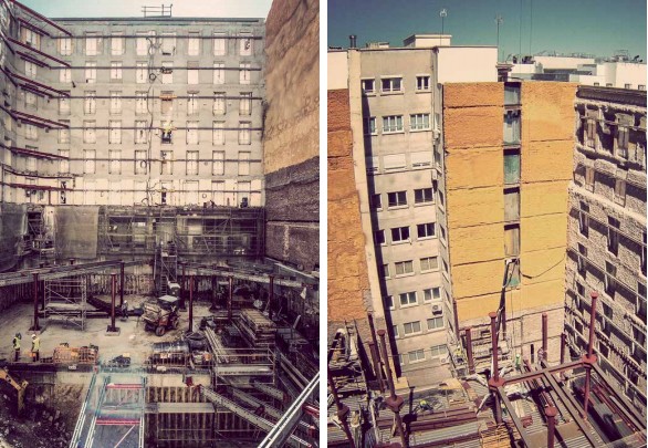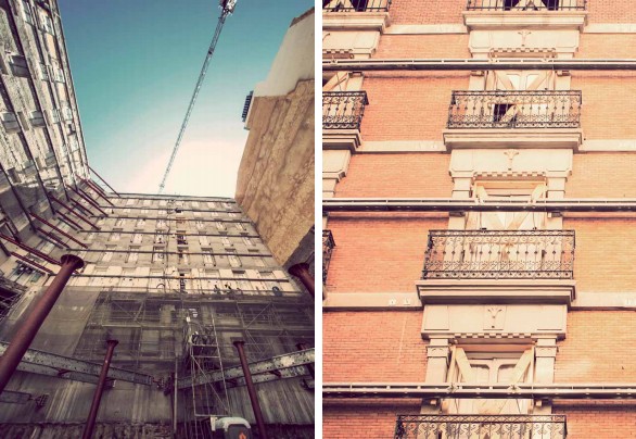Una de las fases clave del proyecto fue el proceso de restauración y estabilización de la fachada, para que pudiera soportar la demolición interna del edificio.