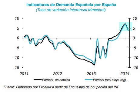 La ligera mejora de la demanda turística nacional, el tirón de los visitantes extranjeros, la situación en Egipto así como la mejoría de las condiciones macroeconómicas de los países europeos están tirando al alza de uno de los principales motores de la economía española. Así, la actividad turística española crecerá un 2% durante 2014, según la Alianza para la Excelencia Turística, Exceltur, que ha revisado al alza sus estimaciones anteriores que cifraban en un 1,8% el aumento para el conjunto del año.