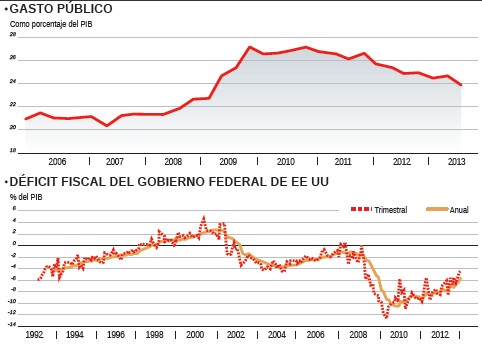 Después de dos años de creciente gasto público por parte del gobierno federal estadounidense, la llegada al Congreso de numerosos legisladores vinculados al Tea Party supuso un cambio de rumbo en la política fiscal del país norteamericano. Así, en 2011, 2012 y 2013, la Administración Obama se ha visto obligada a reducir el déficit y recortar el gasto público.
