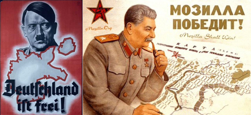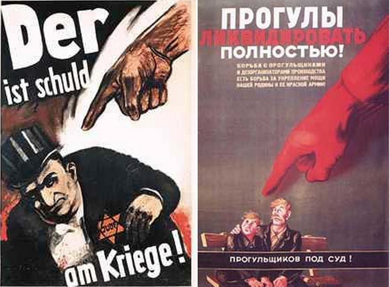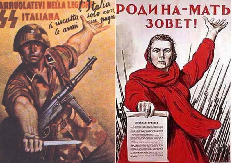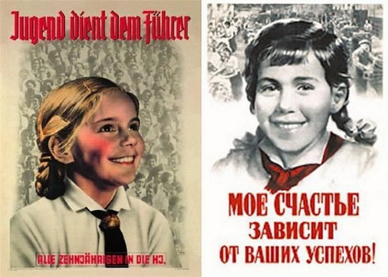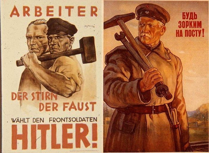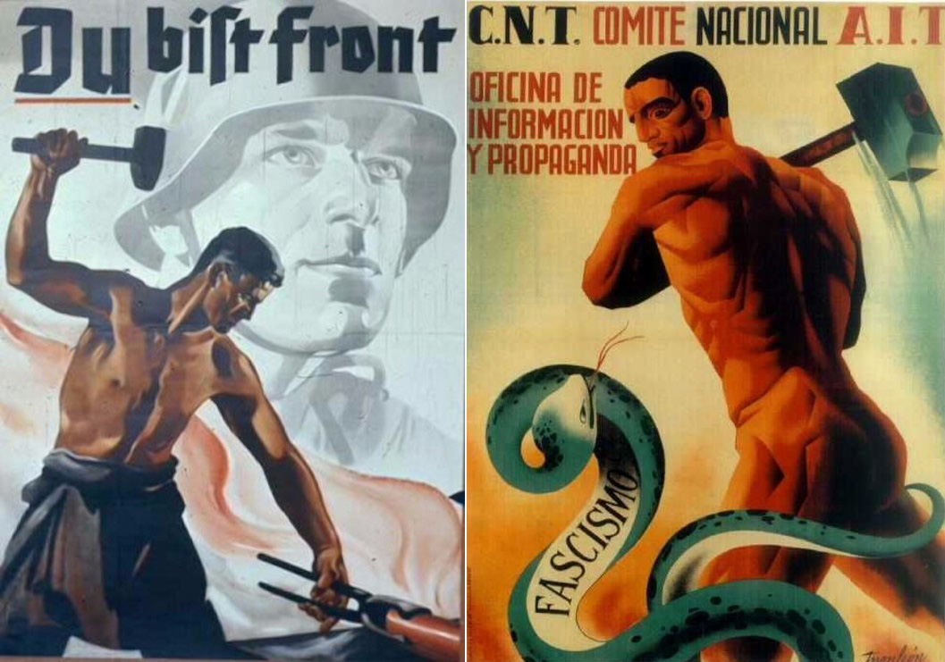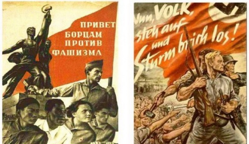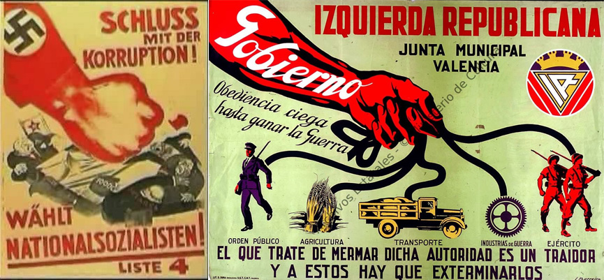Los extremos se tocan. Refrán común para definir en una corta frase bibliotecas enteras sobre movimientos extremistas de uno y otro signo. Del holocausto nazi a la barbarie comunista. Dos factores identitarios que definen a estas ideologías que se cobijan en los extremos son, por un lado, la falta de respeto a cada individuo, como un fin en sí mismo. Por el otro, subestimar el noble valor de la libertad, virtud ensalzada por aquellos que les derrotaron. Ya que una imagen vale más que mil palabras, a continuación repasamos propaganda de uno y otro lado.