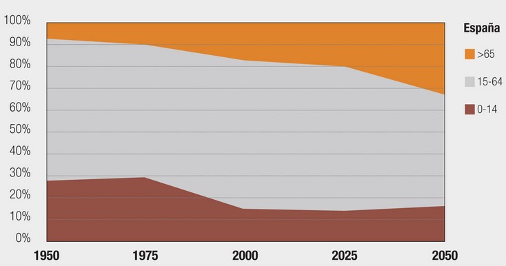 Estas estimaciones son aun más pesimistas en algunos estudios internacionales y las proyecciones de la ONU, que sitúan a España como uno de los países más envejecidos del mundo para esa fecha, con un 40% de la población situada por encima de los 60 años.