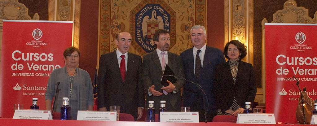 La programación de los cursos ha sido presentada en el Paraninfo de la UCM por José Carrillo, rector de la UCM; José Antonio Villasante, director general del banco y director de Santander Universidades; Carlos Mayor Oreja, presidente del Consejo Social de la UCM, María José Comas, directora de los Cursos y Laura de Pablos, directora de la Fundación General.
