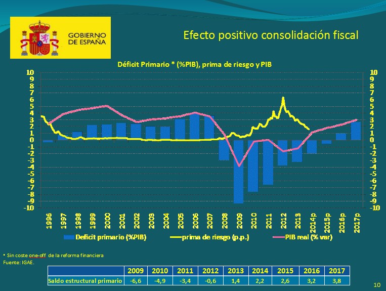 Este año "marca un antes y un después en la evolución de la economía española", ha dicho De Guindos. "Se aumentará el crecimiento, se reducirá el número de parados, tendremos superávit externo y aumentará la demanda doméstica", ha añadido.