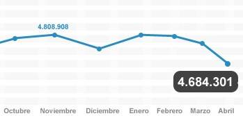 Así, el número de desempleados se ha reducido en abril hasta los 4.684.301, según ha informado este martes el Ministerio de Empleo y Seguridad Social.
