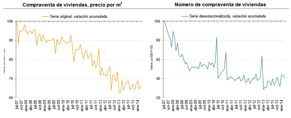 Desde que estalló la crisis, a mediados de 2007, el precio medio de la vivienda acumula un descenso próximo al 33%, y el volumen de compraventas ha caído un 60%, según los datos de los notarios.