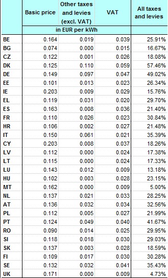 Así pues, a primera vista, podría parecer que el coste de la energía para las familias no es tan oneroso en comparación con otros países de nuestro entorno. Sin embargo, las apariencias engañan, ya que los precios citados incluyen una importante distorsión a tener muy en cuenta: los impuestos (Especiales e IVA), cuya carga no es menor en función de cada país.