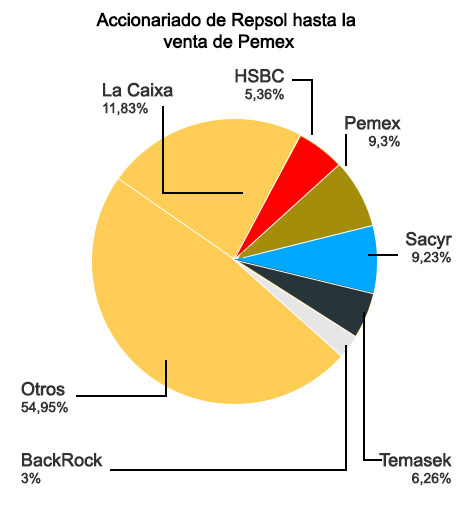 Precisamente este mismo miércoles la entidad británica HSBC ha declarado a la CNMV que posee una participación del 5,368% en el capital de Repsol. El aumento de participación por encima del 5% se produjo el pasado jueves 29 de mayo, antes de la venta de Pemex.