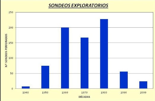 De hecho, España destaca por contar con un índice exploratorio muy bajo en comparación con otros países europeos. Los sondeos exploratorios, tanto en tierra como en mar, realizados en España en busca de petróleo y gas se han desplomado desde los años 80, tal y como muestra la siguiente gráfica, pero nunca han supuesto impactos dañinos relevantes sobre el medio ambiente.