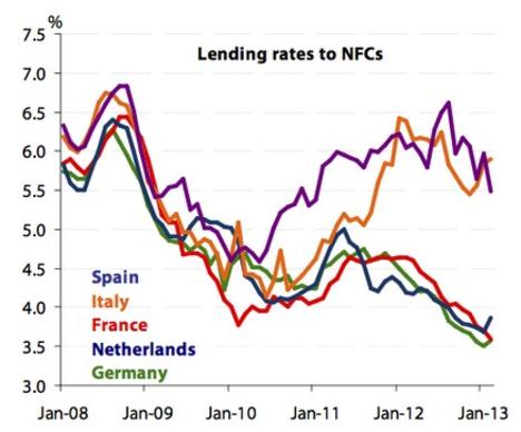Dicho de otro modo, la contracción del crédito es el efecto, no la causa, de la crisis de solvencia que padecen las economías del sur. Mientras familias y empresas no recompongan sus balances y la economía en su conjunto se reestructure y redireccione hacia actividades productivas y rentables (sector exportador, por ejemplo), el crédito no aumentará, y si lo hace corre el riesgo de generar nuevas burbujas insostenibles (deuda pública).